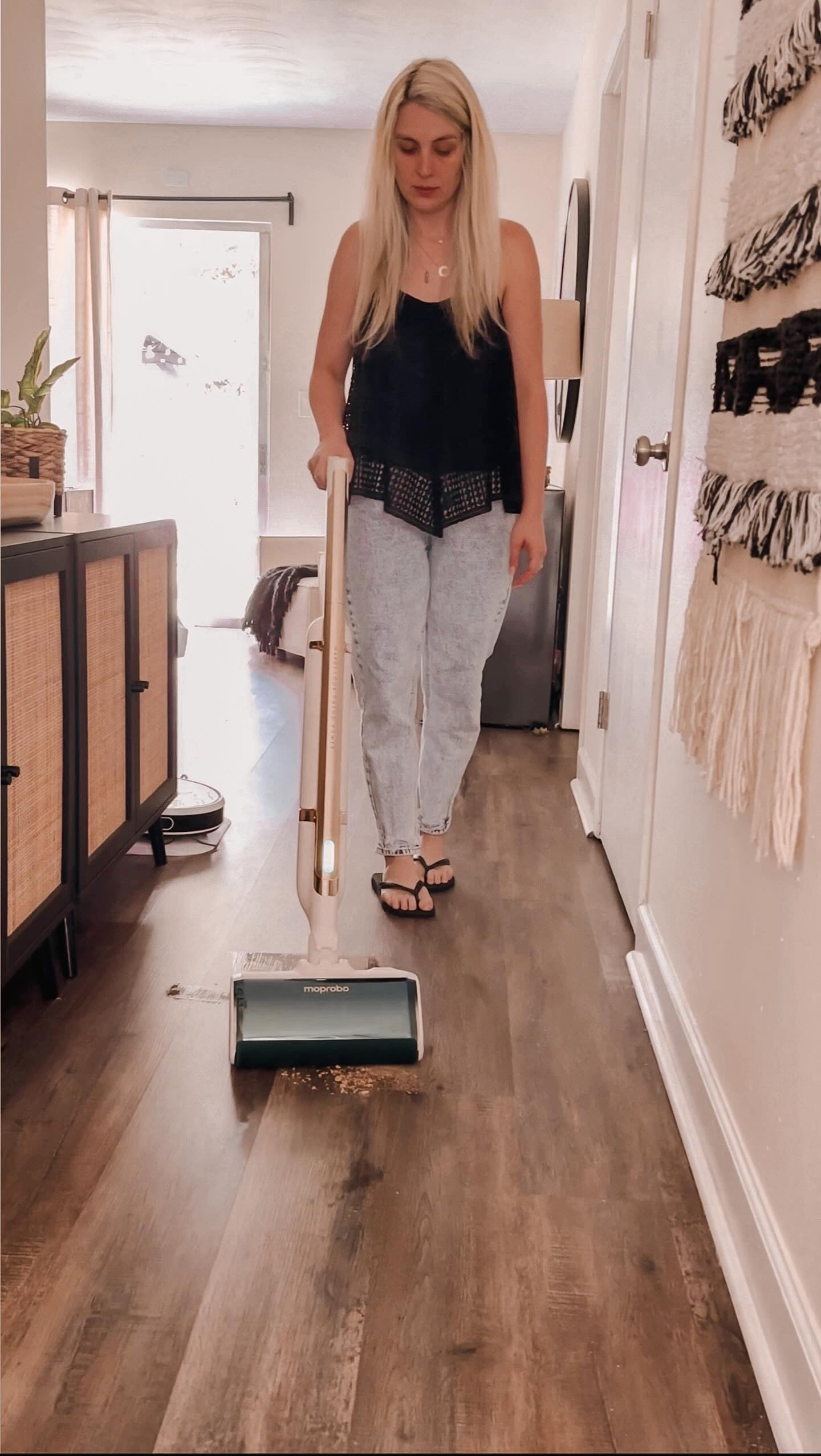 I really like this thing. It’s so easy to use and clean. I used to have to bust out all kinds of brooms and mops to clean our hardwood floors but now it’s easy as pie so I use it often and the floor stays cleaner. Love it!!